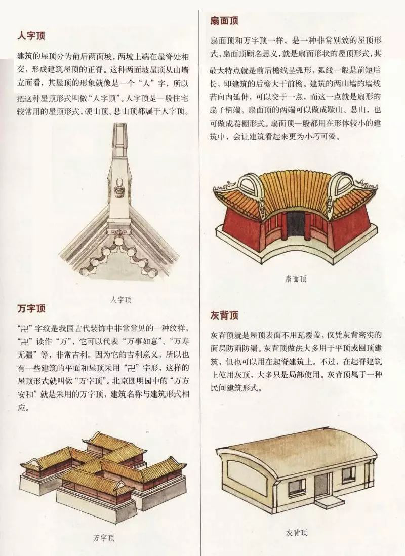 中国古建筑屋顶千变万化,瑰丽多姿,不同的屋顶相互组合、穿插,又会形成不同的屋顶形式。