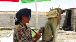 和日村村民正在刻石经。 冯雪红拍摄