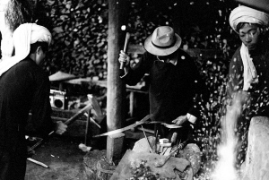 阿昌族制刀有一套独特的蘸水淬火技术