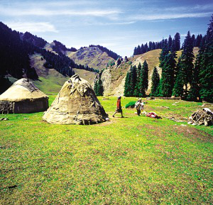 新疆维吾尔自治区木垒县大南沟牧场上的毡房