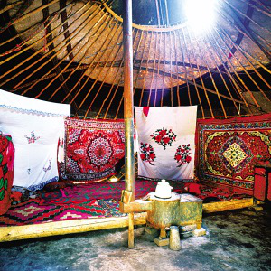 新疆维吾尔自治区木垒县大南沟牧场上毡房内的装饰