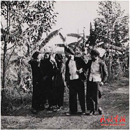 “歌圩”是桂西壮族古老的风俗。每年农历正月、二月、四月都有歌圩日。图为1957年广西壮族自治区凭祥市郊区的歌圩日,这里不但处处欢歌笑语,还有抢花炮、演壮戏、舞彩龙、舞彩凤、唱桂剧等很丰富的文娱活动