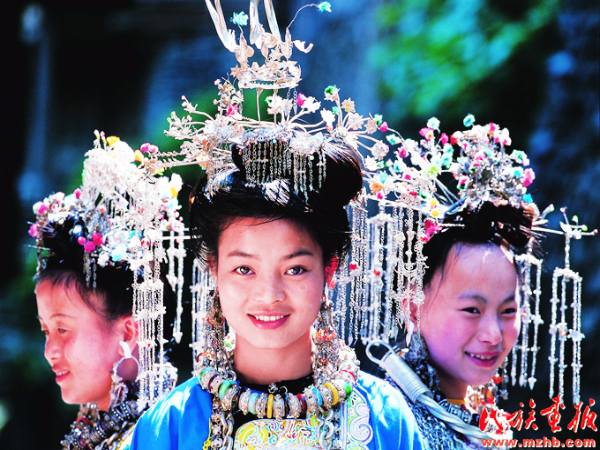 过苗年的时候,贵州苗族未婚少女穿戴起了体现家庭财富的银饰