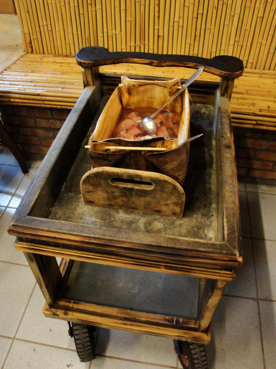 阿美人有一种美味的麦饭石火锅,将烧得滚烫的麦饭石投入盛有鱼、肉、菜等的竹筒或槟榔鞘壳中,利用石块的温度将食物烫熟后食用,味道鲜美且极富营养,且阿美人会煎炒、油炸。