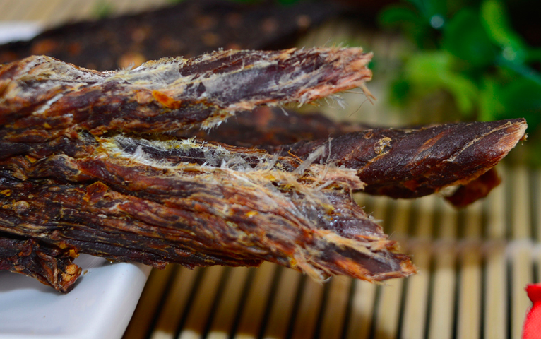 四川、云南等地的藏族多将猪肉制成猪膘。制猪膘时,去掉猪的头蹄,剔除猪骨,四川的藏族还要割下瘦肉,然后抹上花椒、香樟籽,撒上盐,缝合成方形,风干即可。云南藏族在将猪肉缝合之后,还要加一块重石板压,称“琵琶肉”。食用时一圈圈切下,蒸熟后用刀切食。肉类的储存多用风干法。一般在入冬后宰杀的牛羊肉一时食用不了,多切成条块,挂在通风处风干。冬季制作风干肉,因气温低,既可防腐,又可使肉中的血水冻附肉中,保持肉的营养和风味。云南藏族称这种风干肉为牛羊干巴。