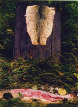 图三-图五选中剥皮的鱼 剥鱼皮 晒鱼皮