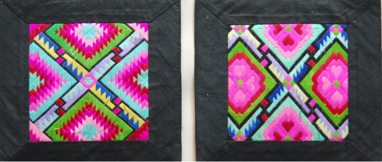 2.锁绣,是指锁针针法的环圈纹单元结构,进行锁套连接构成锁链形绣纹为主体,如同链条,故称锁绣,又像辫子,亦称辫子股绣。将这些辫子股盘在织物表面形成色区,便是锁绣。