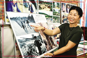 胡亚玲在她的个人摄影展上向观众讲述照片背后的故事
