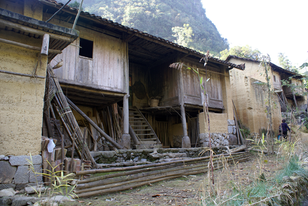 毛南族聚居于偏僻山区,20世纪以前,经济展缓慢,居民贫富差异较大,其房屋建筑主要有两种形式:一种是历代传承下来的木结构干栏式;另一种是受汉式影响而发展起来的硬山搁檩地民居。乡村群众多为简陋的木结构干栏式茅房。到20世纪,随着经济的逐步展,传统的木结构干栏式茅房逐步被石块、土砖或夯土、木混合结构的干栏石屋所取代。在交通较为便利的邻近集镇的富有人家则流行石料、土砖或夯土筑成的硬山搁檀地居式瓦房,四面墙体均用料石、土砖筑成,顶上的桁条上钉以瓦桷板条(俗称栓皮),覆盖以鱼鳞瓦片。有的还用青砖在原干栏的两边砌成厚实的封山式山墙,边脊两端塑有翘起的凤形图案,显得精致美观;山墙中间开设两扇可供室内通风和采光的直棂式大窗。每一家的前面都有一个小庭院,院门开于一侧,面向石板巷道。在主房旁侧或前檐外另建一间作为厨房或牛栏,使整体形成一个独立的居住小单元。如今,简陋的木结构干栏式房屋已绝迹,乡村的钢筋混凝土结构楼房逐渐增多。