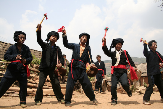 在双江,有一个偏远的小山村,因这里“出产”蜂桶鼓和蜂桶鼓舞而远近闻名,它就是邦丙乡南直村。蜂桶鼓和蜂桶鼓舞是双江布朗人的独门绝活,完全属于双江布朗人。蜂桶鼓源于它的形状像民间养蜂的蜂桶而得名,而蜂桶鼓的由来却充满了神秘的传奇色彩。相传: