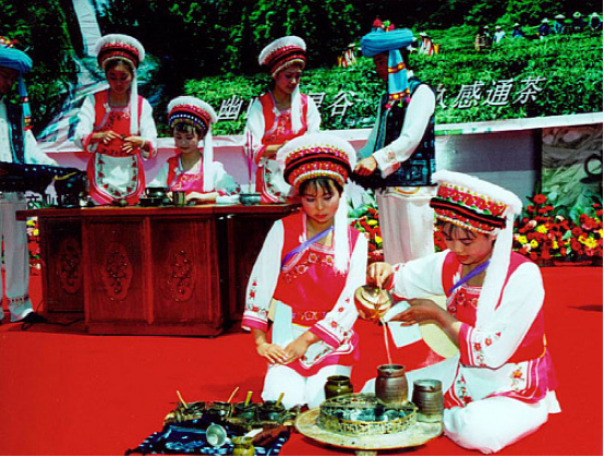 白族热情好客,先客后主是白族待客的礼节。家中来了客人,以酒、茶相待。著名的“三道茶”就是白族的待客礼。但白族人倒茶一般只倒半杯,倒酒则需满杯,他们认为“酒满敬人,茶满欺人”。受到白族人热情的款待,应说声“挪卫你(谢谢)”来表示你的谢意和感激之情。