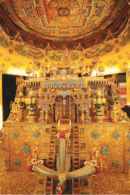 2011年,我区全面启动大昭寺金顶维修工程,朵普·次嘎积极参与到大昭寺金顶修缮保护工程当中。 图为大昭寺金碧辉煌的金顶。