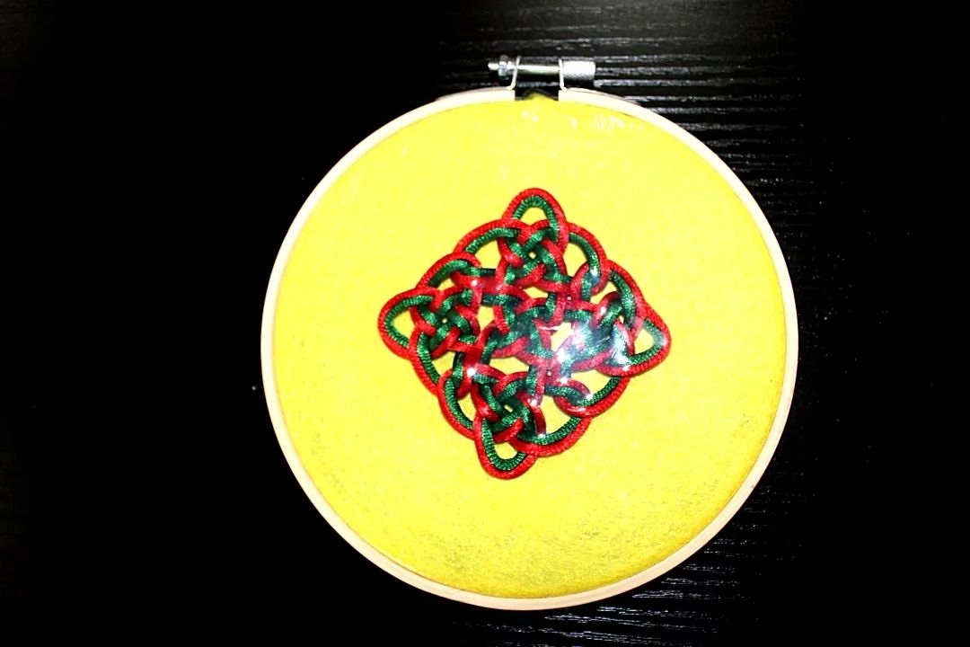 首先要选定编结材料,设计好色彩方案,用的线材可以是多种,根据需要进行颜色搭配。编完之后,要将结子抽紧定形,这是整个编结过程中最重要也最考验技术的步骤。绳结在编好、抽好之后,修的工夫也不能马虎,而注重细节。