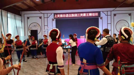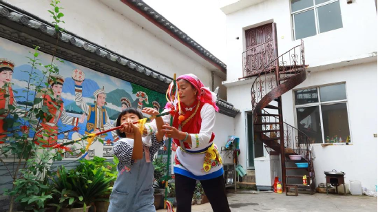 传统文化时时学,白族舞蹈代代传。小小的霸王鞭看似简单,里面却包含了白族人民田间劳作的智慧。用自己的努力,言传身教地教授霸王鞭,这愚公移山般的精神也是传承人的智慧。“今天下午6点,我还要去江尾一趟,教他们的绕三灵团队跳霸王鞭”,何松康说。