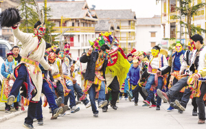 2014年2月8日,四川省雅安市宝兴县硗碛藏族乡的藏族同胞举行灯会、舞狮、舞龙等活动,庆祝“上九节”的到来。